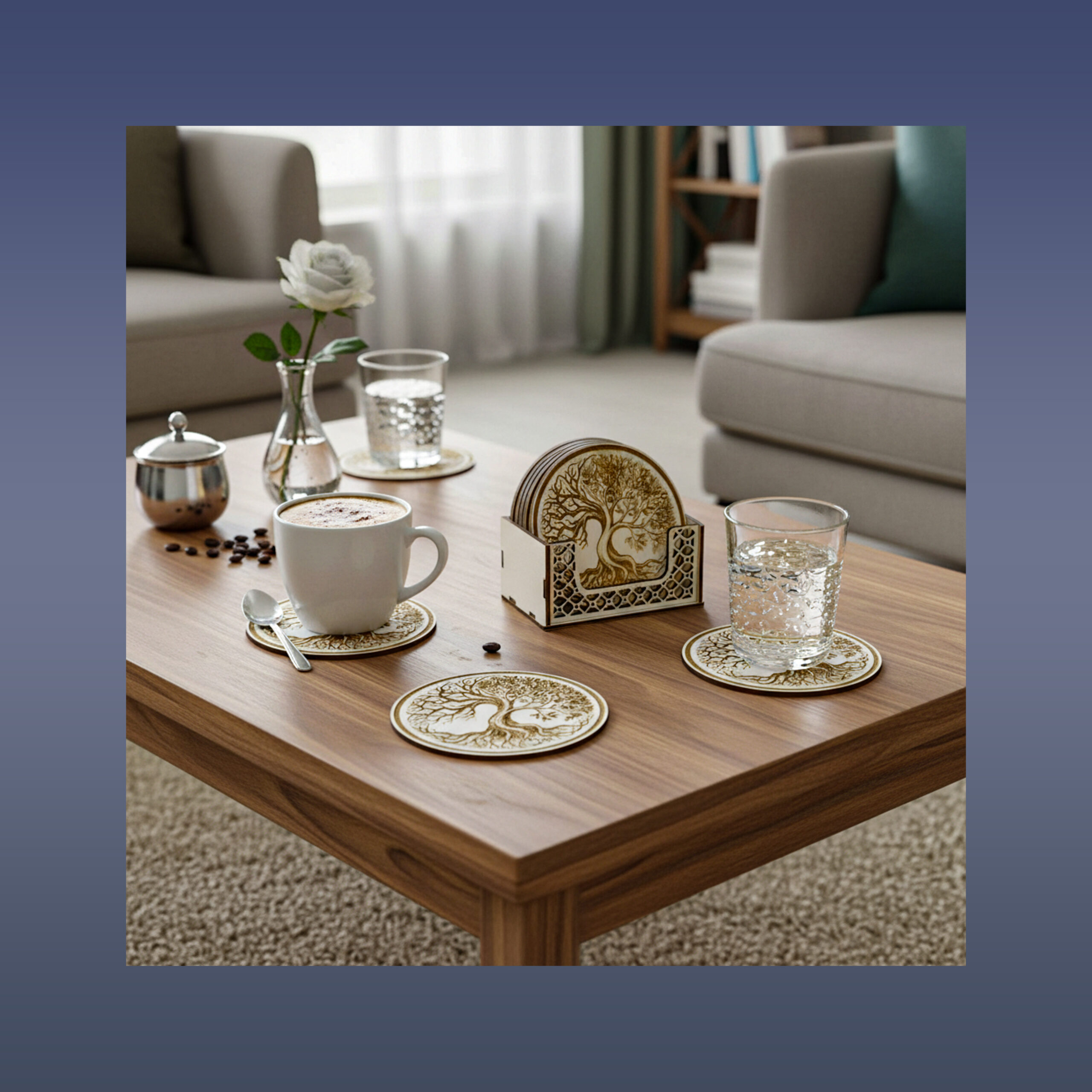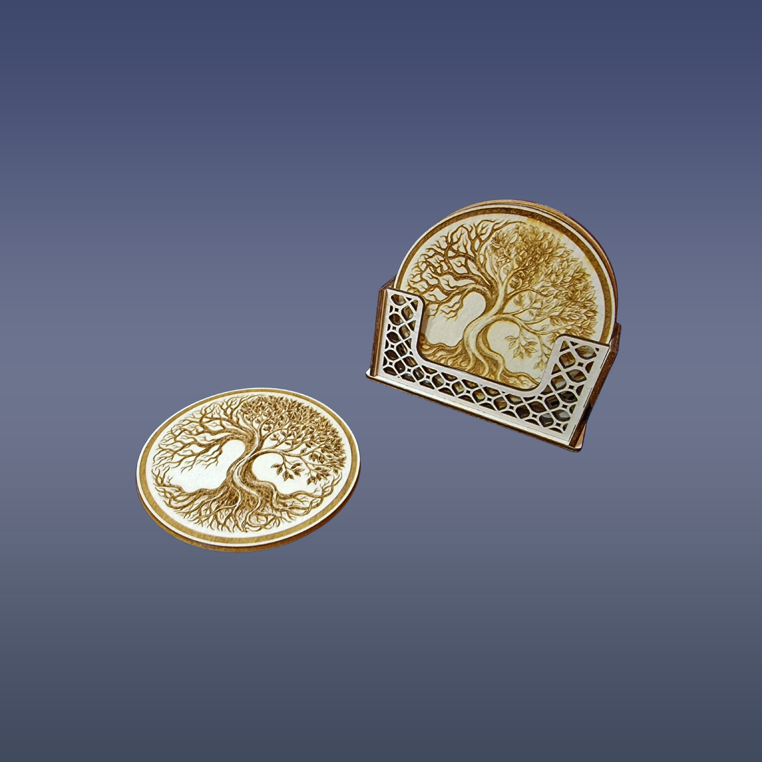 Drevená harmonizačná podložka pod pohár – Strom života var. 4