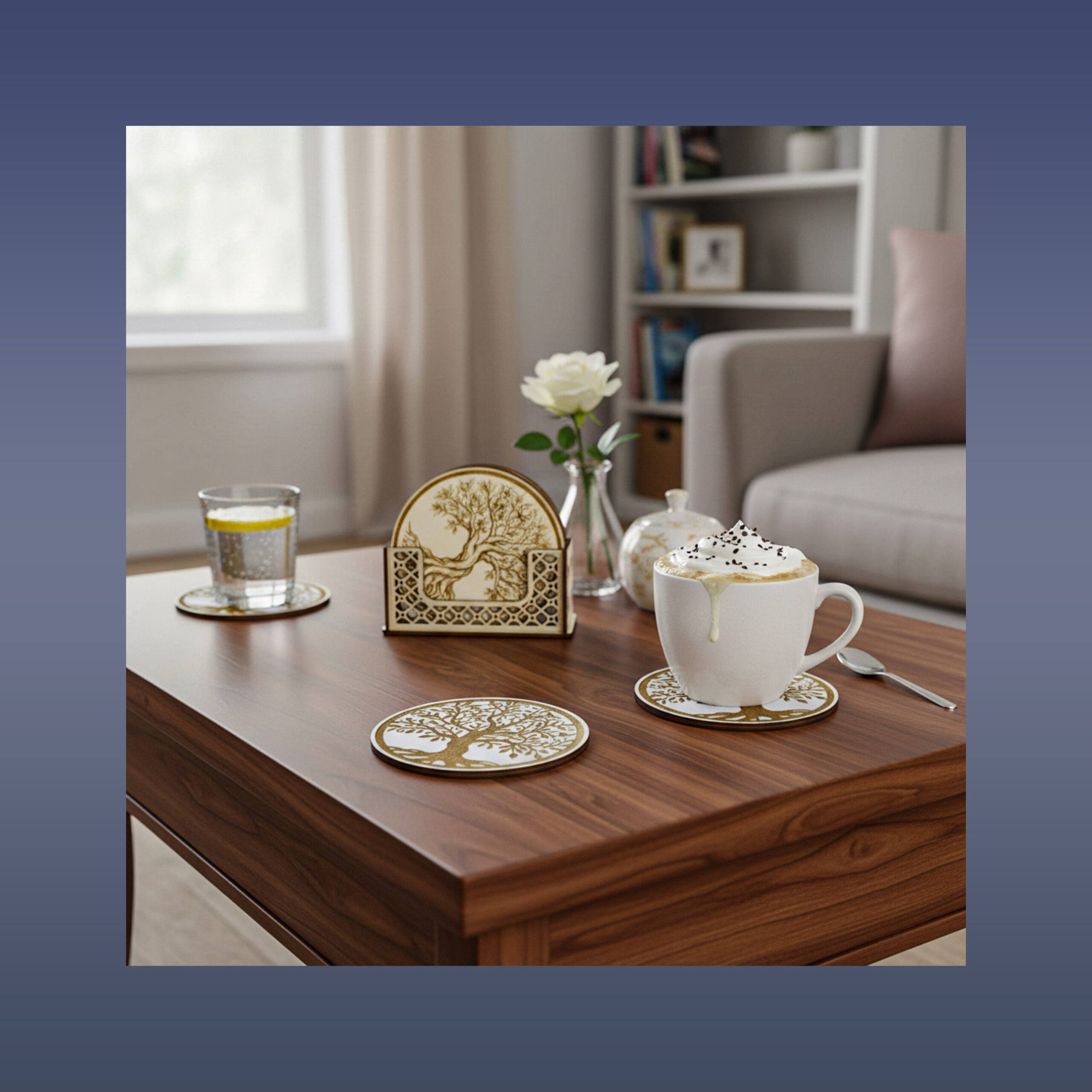 Drevená harmonizačná podložka pod pohár – Strom života var. 5