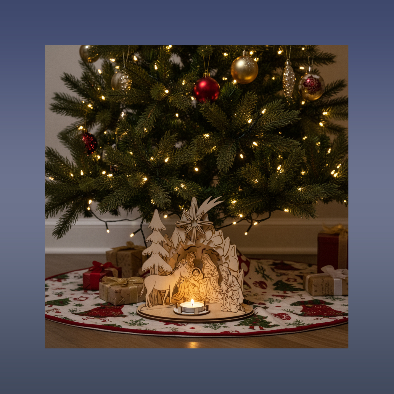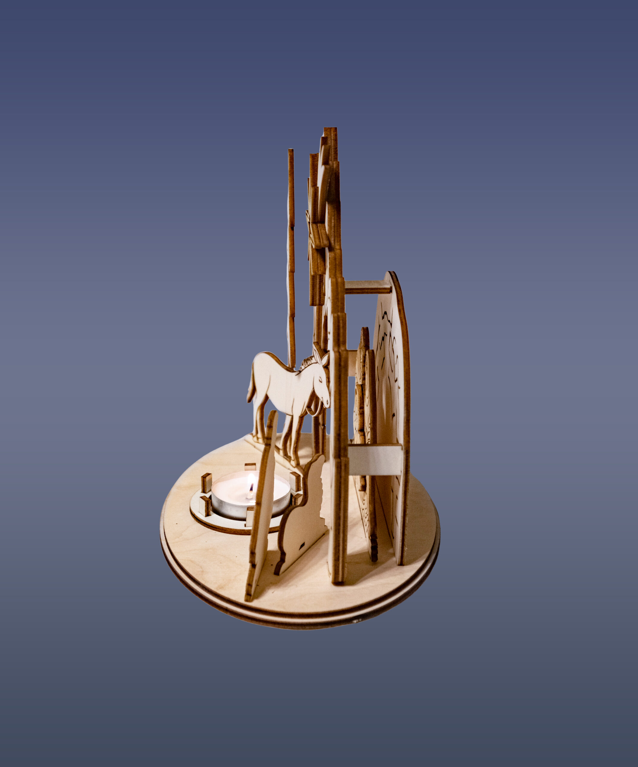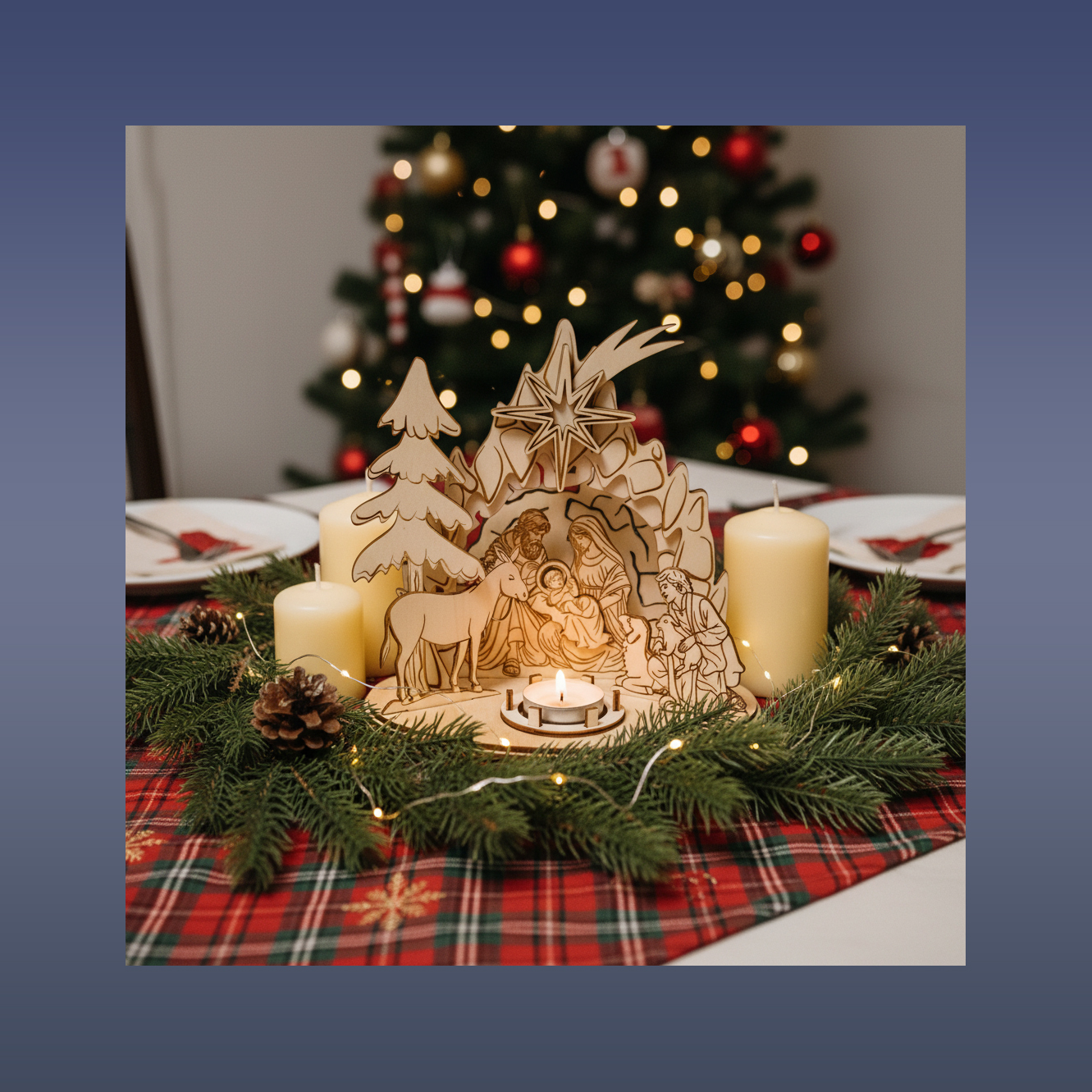 Drevený betlehem jemný vzor, som vyrobil pre tých, ktorí okrem tradičnej krásy hľadajú aj kúsok praktickej mágie – možnosť doplniť ho teplom a svetlom plameňa. Špeciálne miesto v strede pojme štandardnú čajovú sviečku, ktorá betlehem jemne osvieti a vytvorí nezameniteľnú útulnú atmosféru.
