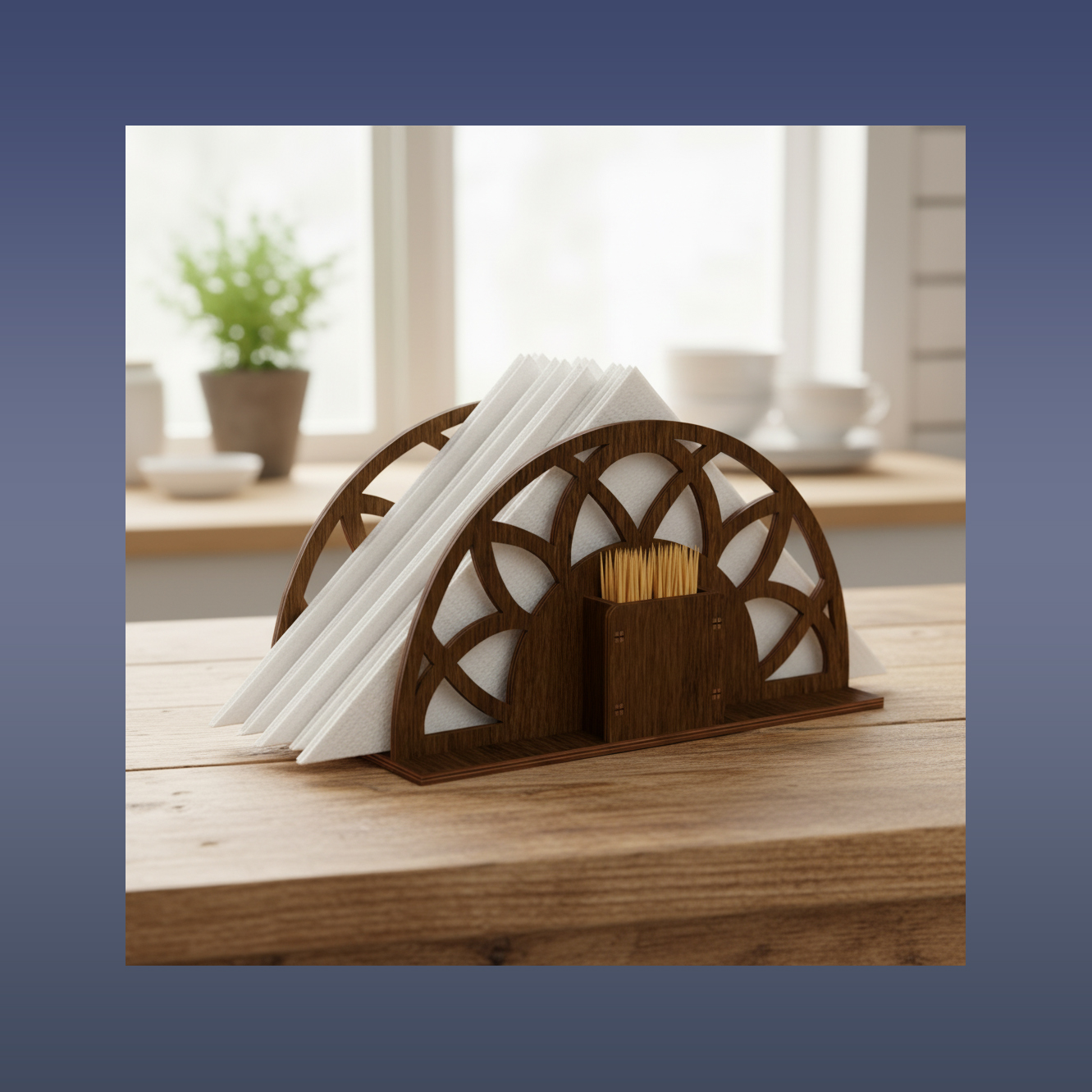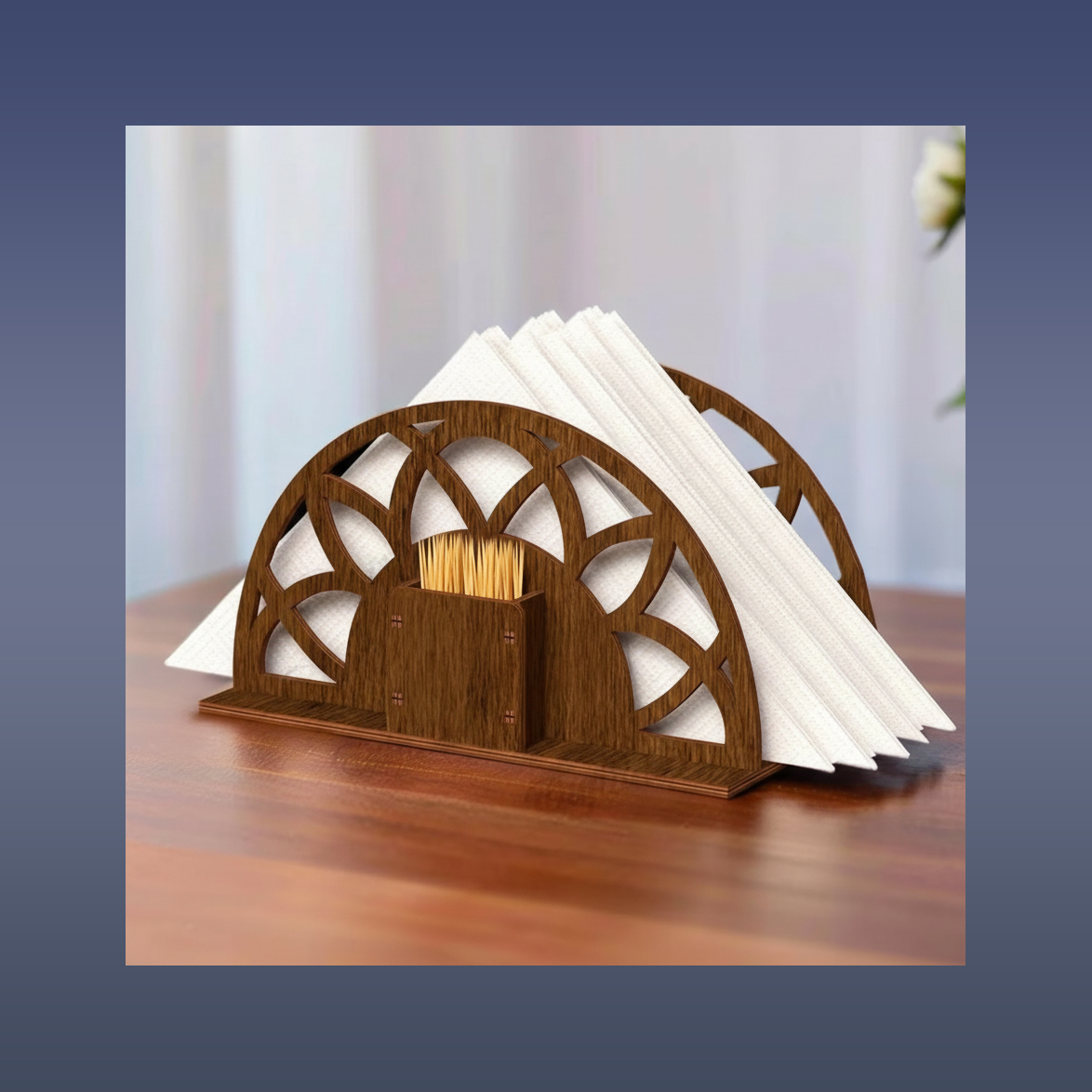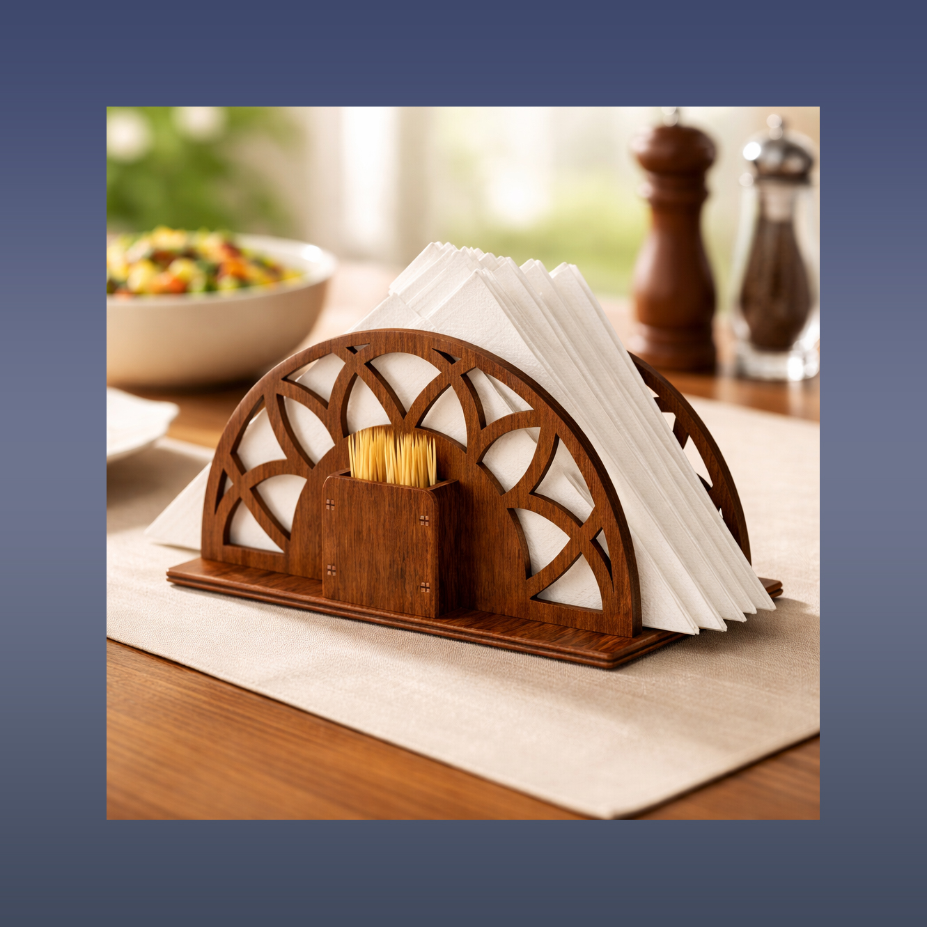 Drevený stojan na servítky s oddelením na špáradlá varianta D