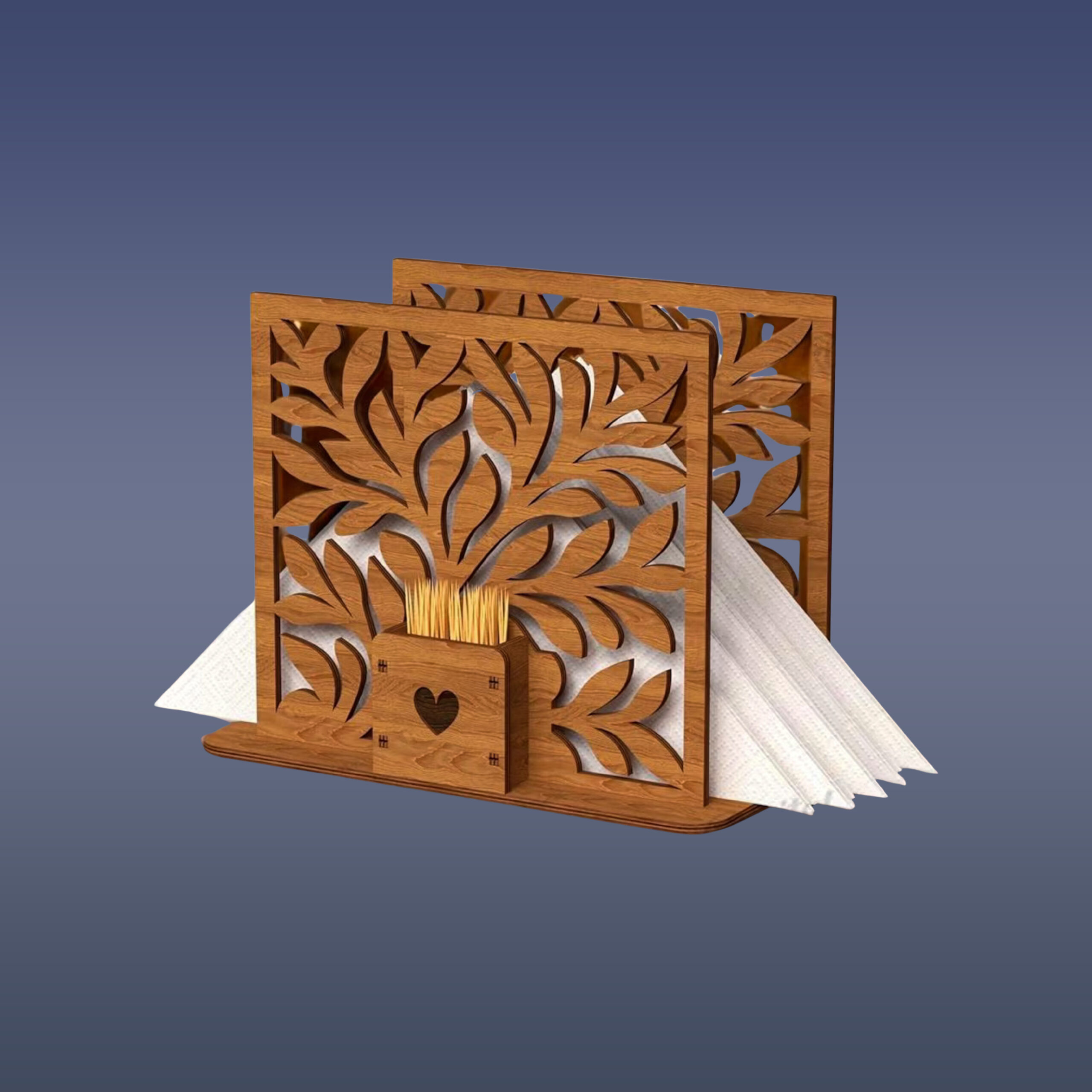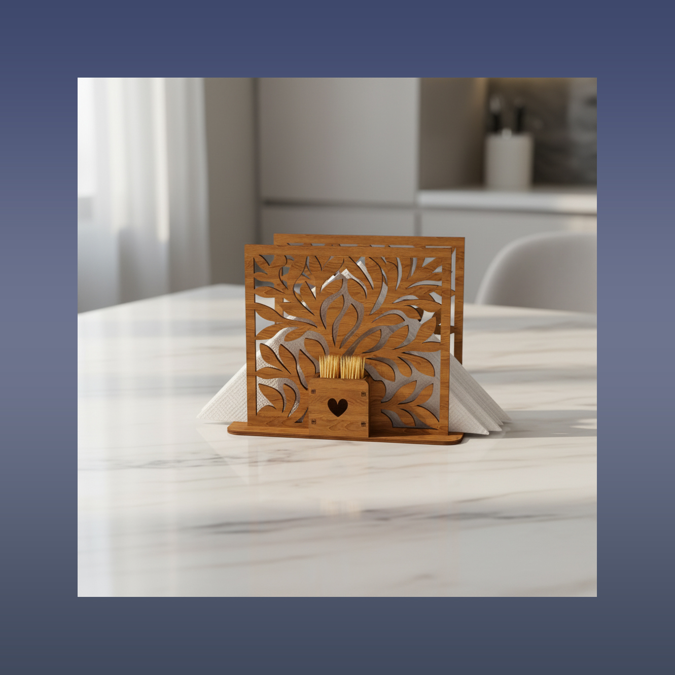 Drevený stojan na servítky s oddelením na špáradlá varianta E
