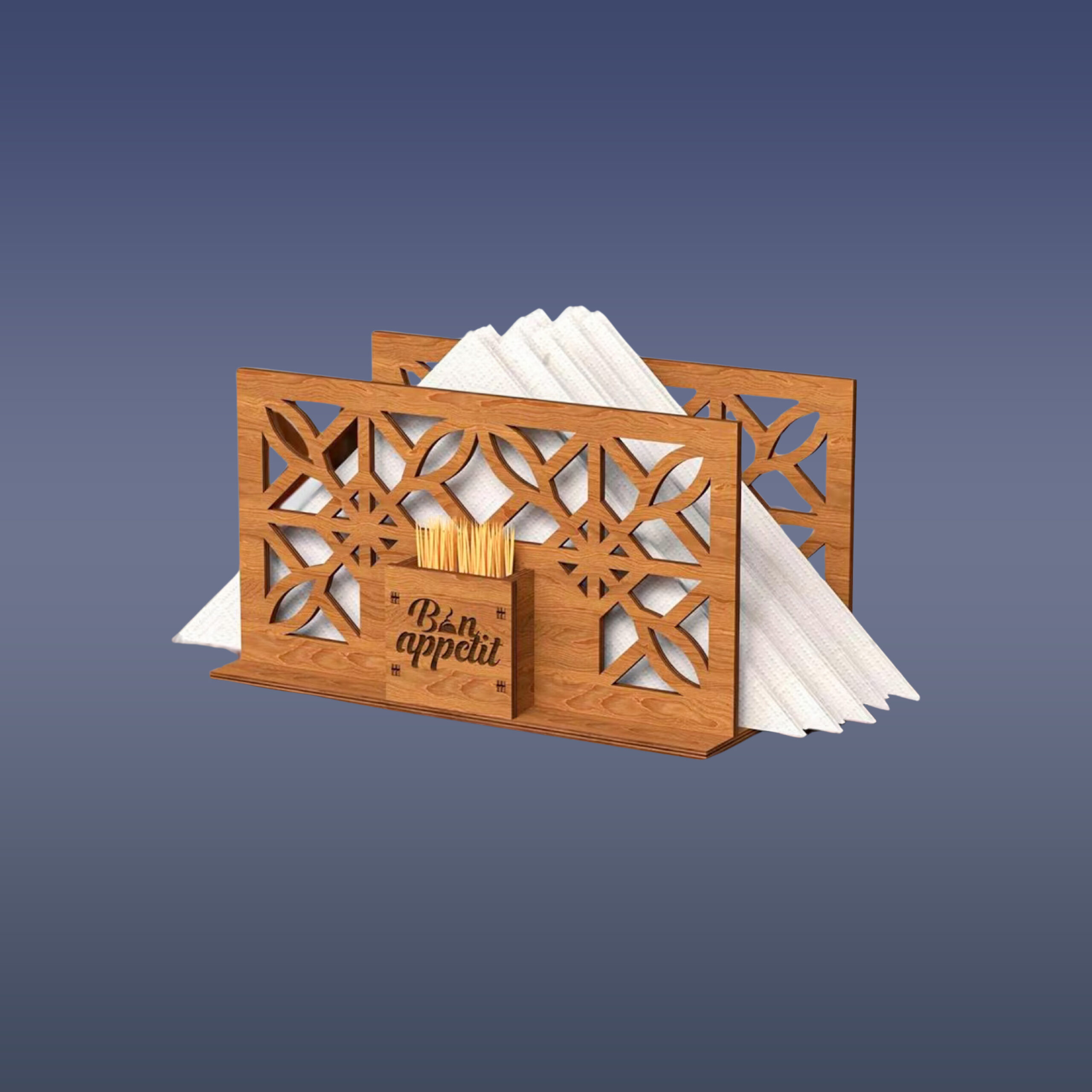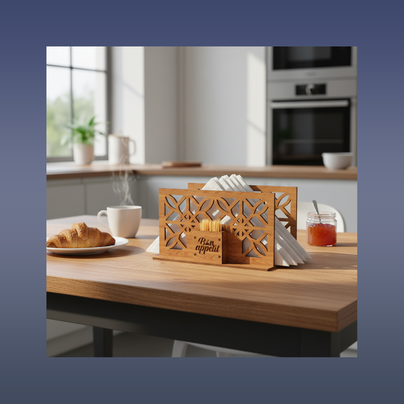 Drevený stojan na servítky s oddelením na špáradlá varianta F