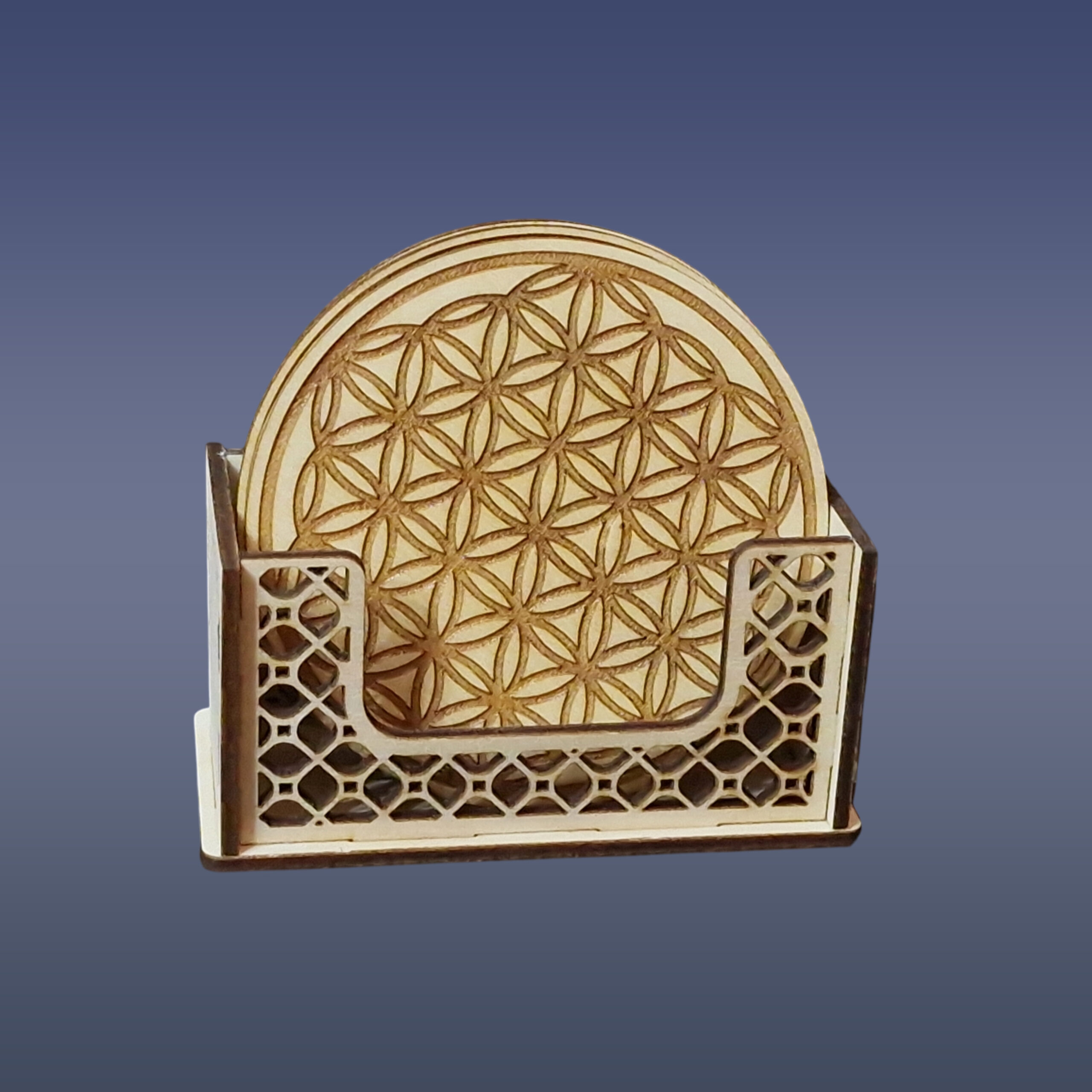 Drevená harmonizačná podložka pod pohár – Kvet života
